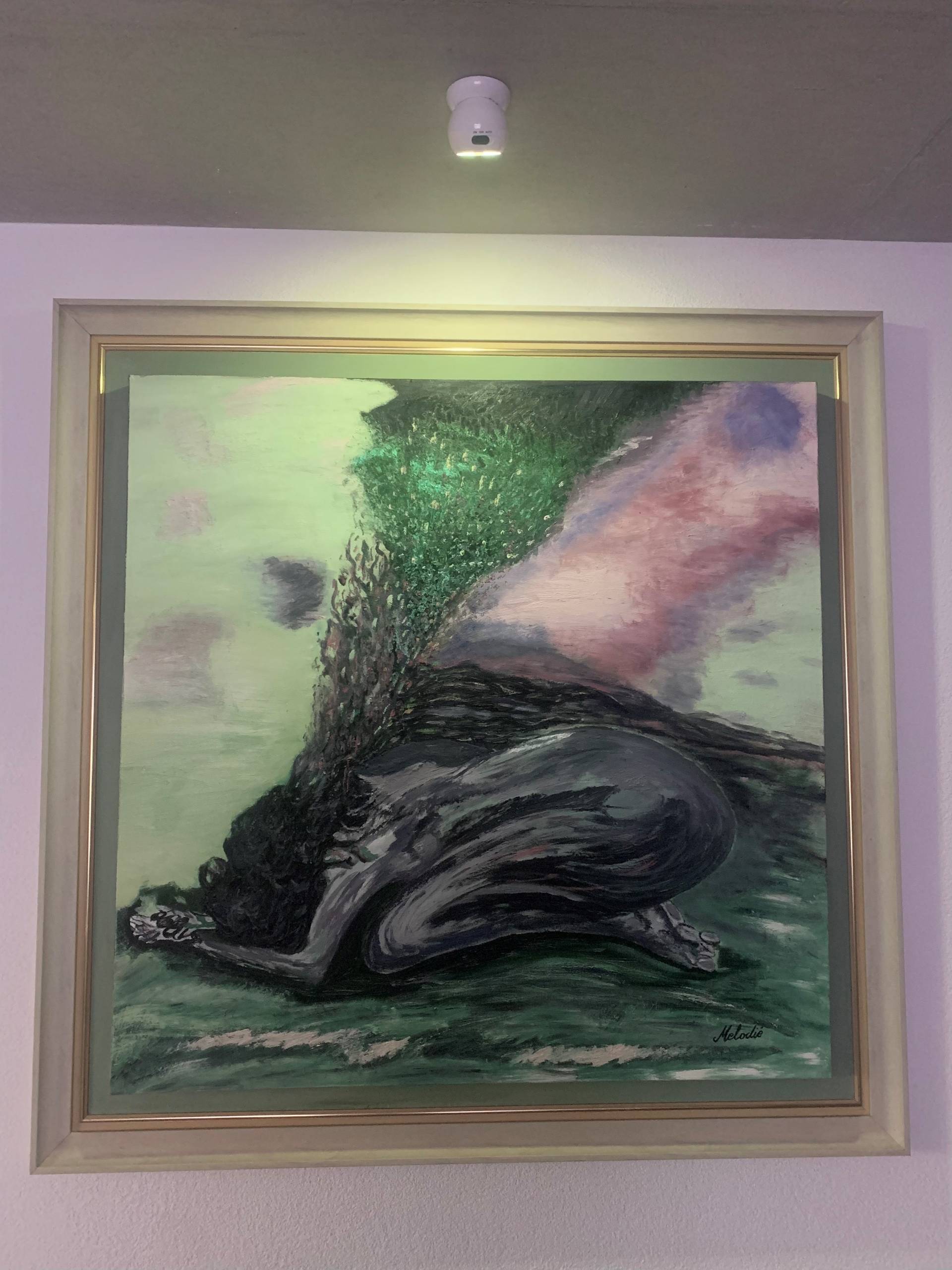 Dieses Bild zeigt die nackte Wahrheit – in zwei Dimensionen. Manche sehen eine Frau, die innerlich zerbrochen ist, am Boden zerstört, kraftlos und ohne Hoffnung. Die Haare stehen noch halb lebendig, als letztes Symbol eines Lebens, das sich aufzulösen scheint. Die Szene wirkt bedrückend: Chaos, Kälte und Dunkelheit. Es scheint keinen Ausweg zu geben.